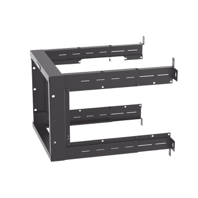 El rack de montaje en pared de profundidad ajustable cumple con los estándares EIA/ECA-310-E, está disponible en 9, 12 o 18 UR, construido en acero y es capaz de aceptar equipos EIA de 19' de ancho. Cuenta con profundidades ajustables de 18 in, 21.5 in o 25 in. Los rieles de montaje del equipo son de estilo roscado #12-24. Los rieles de montaje del equipo incluyen la numeración impresa de las unidades de rack de abajo hacia arriba.