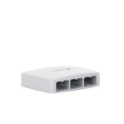 Diseño de bajo perfil para montaje discreto. Soporta módulos mini-com de fibra, cobre, AV. Instalación flexible: tornillos, adhesivos, imanes. Capacidad de 6 puertos para alta densidad. Cumple con RoHS, material ABS duradero.