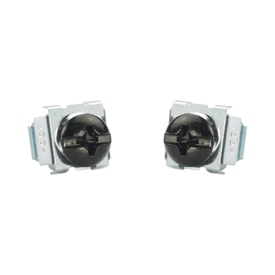 Tuercas enjauladas extraíbles y reemplazables. Tornillos #12-24 para rieles de orificio cuadrado. Material de acero para mayor durabilidad. Color negro para uniformidad estética. Cumple con la normativa RoHS.
