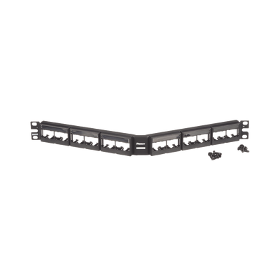Panel de Parcheo Modular Mini-Com (Sin Conectores), Angulado, Sin Blindaje, Con Etiqueta y Cubierta, de 24 puertos, 1UR