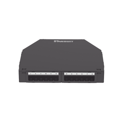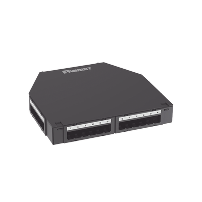 Compatible con sistemas bajo piso de 1.7 pulgadas. Instalación vertical y horizontal versátil. Fabricado en aluminio, color negro elegante. 24 puertos para conexiones eficientes. Cumple con normativa RoHS garantizando seguridad.