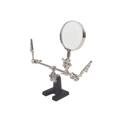 Soporte con lupa y dos brazos con clip. Ideal para trabajos de soldadura.