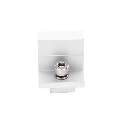Sujetador de aluminio anodizado/acero inoxidable. Torque recomendado de 11 N/m. Compatible con rieles 3 y 7. Llave requerida de 6 mm. Responsabilidad del instalador en armado personalizado.