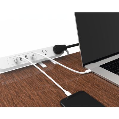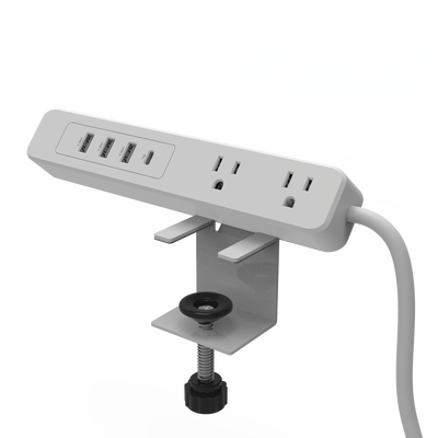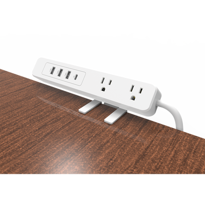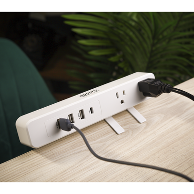 Multicontacto con Montaje para Escritorio Carga Rápida para 65 W 3 x Nema 5-15P 2 x USB-A (5V @3A) 1 x USB-C (65W)