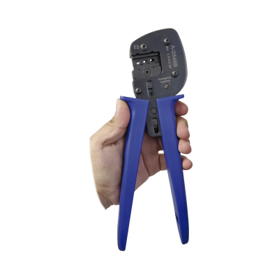 - Pinza especializada para ponchado de terminales metálicas de uso eléctrico para cables solares calibre 10-14 AWG (2.5-6 mm2).