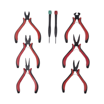 Juego de Herramientas con 6 Pinzas Eléctricas de 4.5" + 2 Desarmadores de Precisión (Plano y Cruz).
