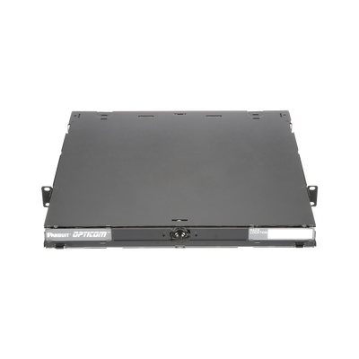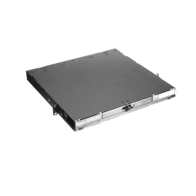Panel de Distribución de Fibra Óptica, Acepta 4 Placas FAP o FMP, Bandeja Deslizable e Inclinable Hacia Abajo, Hasta 96 Fibras, Color Negro, 1UR