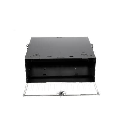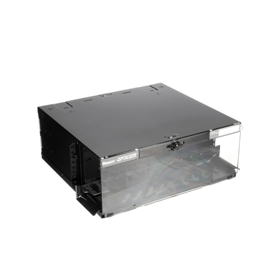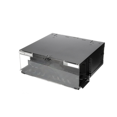 Panel de Distribución de Fibra Óptica, Acepta 12 Placas FAP o FMP, Bandeja Deslizable e Inclinable Hacia Abajo, Hasta 288 Fibras, Color Negro, 4UR
