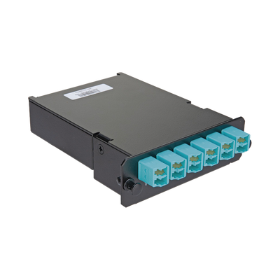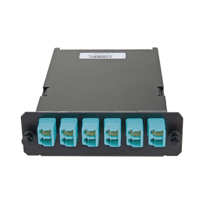 Placa Acopladora de Fibra Óptica FAP, Con 12 Pigtails y 6 Conectores LC Duplex (12 Fibras), Para Fibra Multimodo OM3 OM4, Color Aqua