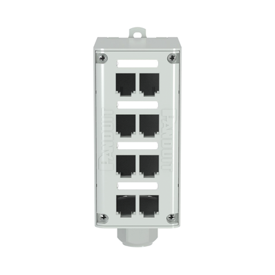 Panel de Parcheo Modular para Fibra Óptica, de Instalación en Riel DIN Estándar de 35mm, 8 Puertos Mini-Com, Color Gris