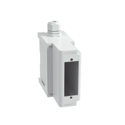 El panel de conexión de fibra óptica de riel DIN IndustrialNet™ proporciona protección de fibra para cableado de estilo distribución terminado. Puede montarse en un riel DIN estándar de 35 mm y bloquearse en su lugar con pestillos ajustables, que están diseñados para permitir su montaje en una superficie plana. Este gabinete de montaje en riel DIN incluye una glándula de entrada de cables PG21 que incluye dos inserciones para usar con una variedad de cables de fibra, y tornillos de cabeza Phillips de 6-32 × 3/8' para montar la placa frontal en el panel de conexiones.