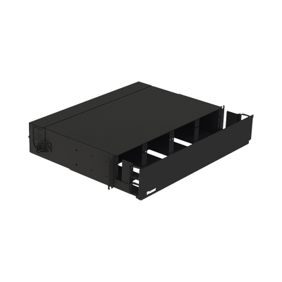 Panel de Distribución de Fibra Óptica, Acepta 8 Placas FAP o FMP, Bandeja Deslizable, Hasta 192 Fibras, Color Negro, 2 UR