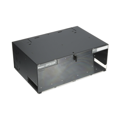 Panel de Distribución de Fibra Óptica, Acepta 12 Placas FAP o FMP, Bandeja Deslizable e Inclinable Hacia Abajo, Hasta 288 Fibras, Color Negro, 4UR