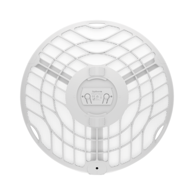 Dimensiones compactas de 415 x 415 x 303 mm. Ganancia antena 60 GHz hasta 38 dBi. Puerto Ethernet 10/100/1000 Mbps integrado. Fuente de alimentación PoE pasivo 24VDC. Resistencia al viento hasta 200 km/h.