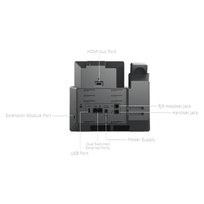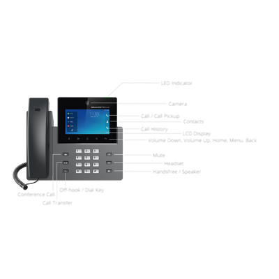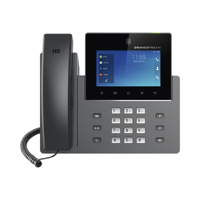 16 cuentas SIP con videollamada 1 megapíxel. Bluetooth para sincronización y audífonos inalámbricos. Pantalla táctil HD de 5 pulgadas (1280x720). WiFi doble banda (2.4GHz y 5GHz) integrado. Procesador ARM Cortex A53 4 núcleos 1.3 GHz.