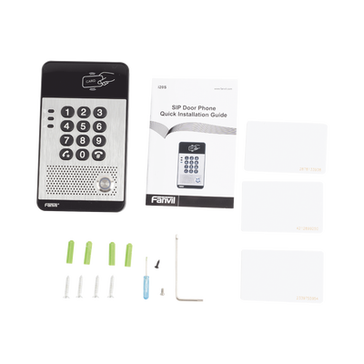 Audio Portero IP con 2 líneas SIP, relevador integrado, teclado numérico y lectora de tarjetas RFID para control de acceso, PoE