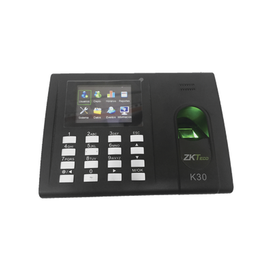 El K30 es una elegante terminal de Tiempo y Asistencia con funciones básicas de control de acceso.Permite la administración de cerraduras eléctricas y botones de salida.
