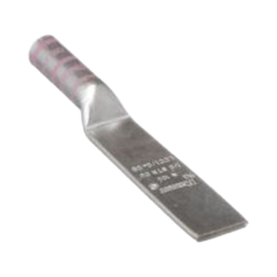 Terminal de cobre con orificio 3/8 pulgadas. Adecuado para cable 1 AWG. Mirilla para inspección de inserción del conductor. Material de cobre estañado resistente a la corrosión. Certificado UL y CSA para 35 kV, 90°C.