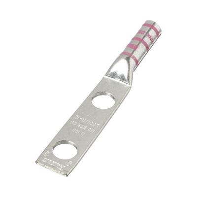 Terminal de cobre con orificio 3/8 pulgadas. Adecuado para cable 1 AWG. Mirilla para inspección de inserción del conductor. Material de cobre estañado resistente a la corrosión. Certificado UL y CSA para 35 kV, 90°C.