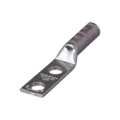 Terminal de Compresión de Barril Largo, de Dos Orificios de 3 8, para Cable 1 0 AWG, Espacios Entre Orificios de 1 in