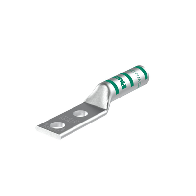 Terminal de Compresión de Barril Largo, de Dos Orificios de 1 4, para Cable 2 AWG, Espacios Entre Orificios de 0.63in