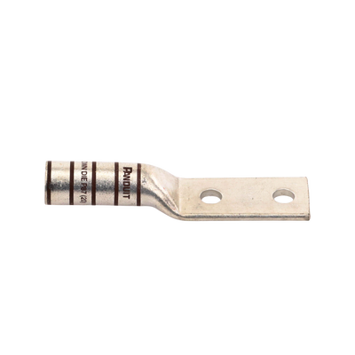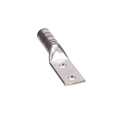 Terminal de compresión con 2 orificios de 1/2'. Compatible con cable de 500 kcmil. Espacio entre orificios de 1.75'. Tambor largo para maximizar prensas. Certificado UL y CSA para seguridad.