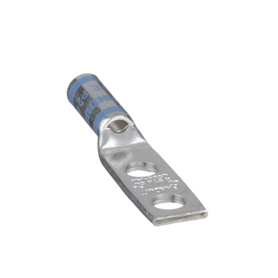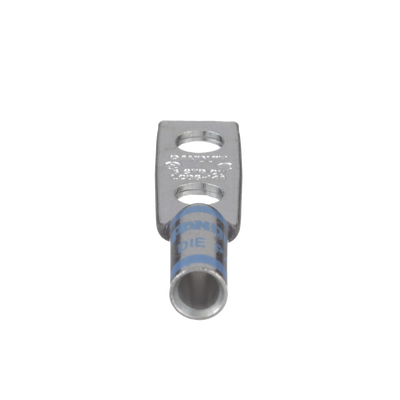 Talón del conector de compresión de cobre estañado LCD6-14A-L, dos orificios, tambor estándar, tambores codificados por colores marcados con números de índice de matriz de Panduit y de un competidor especificado para la adecuada selección de matriz de prensado. Una mirilla de inspección ayuda a comprobar visualmente la inserción total del conductor, y el material estañado previene la corrosión. Está incluido en el Listado UL y certificado por CSA.