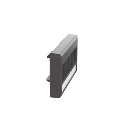 Acepta cuatro módulos mini-com para personalización. Instalación en apertura estándar de muebles de oficina. Incluye protector para etiquetas de identificación fácil. Material ABS negro con orientación salida plana. Cumple normativa RoHS para seguridad ambiental.