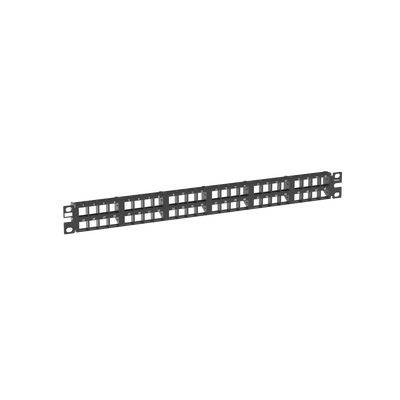 Panel de parcheo modular con 48 puertos. Compatible con jacks TP y Keystone Panduit. Construcción en CRS, cumple con RoHS. Identificación sencilla con áreas para rotular. Diseño liso, 1 unidad de rack.