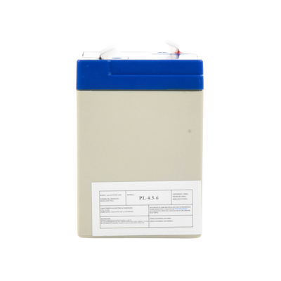 Batería AGM-VRLA de 6 V y 4.5 Ah. Tecnología avanzada de fibra de vidrio absorbente. Diseño libre de mantenimiento y sellado hermético. Certificación UL para seguridad y calidad. Terminales de plomo con electrolito en gel.