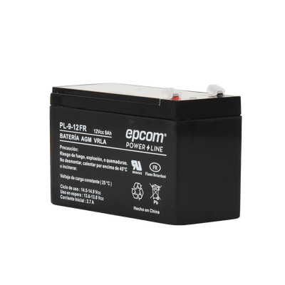 La serie de baterías EPCOM POWERLINE, están diseñadas con tecnología AGM-VRLA ( Fibra de vidrio absorbente, con válvulas de regulación), placas de alto rendimiento y electrólito para proporcionar una salida de energía adicional. Las baterías de la serie EPCOM POWERLINE son baterías de respaldo para equipos electrónicos, con una vida útil de diseño flotante de 5 años a 25°C. , aprobado por UL ( MH64542 ).
