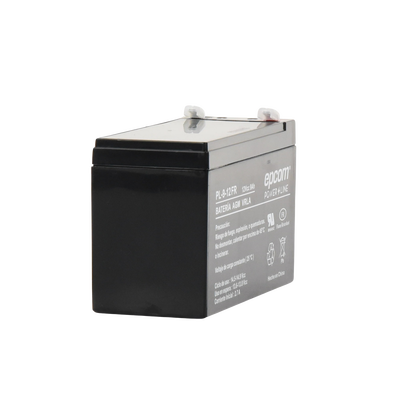 Batería AGM-VRLA con voltaje de 12 VCC. Capacidad de 9 Ah para energía adicional. Vida útil de hasta 5 años a 25°C. Certificado UL (MH64542) para seguridad. Diseño sellado y libre de mantenimiento.