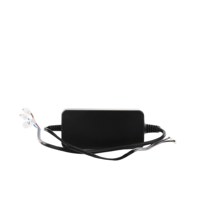 Voltaje de entrada 15-30 VCC, salida 12 VCC. Corriente de salida máxima 3 amperes. Conector de entrada tipo terminal atornillable. Material de plástico ABS resistente. Operación de -20°C a 40°C.