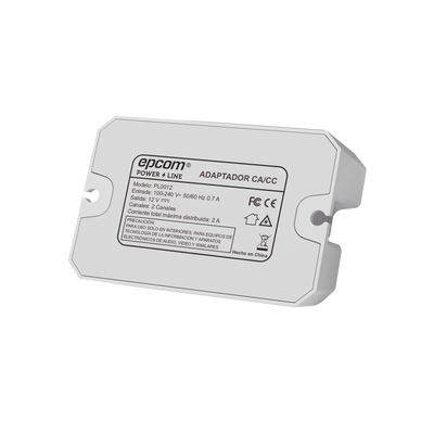 Voltaje de entrada 110V - 240VCA. Salida de voltaje 12 VCC a 2 A. Frecuencia de operación 50-60 Hz. Dimensiones compactas 77.3 x 51.9 x 30.5 mm. Rango temperatura: -20 °C a 45 °C.