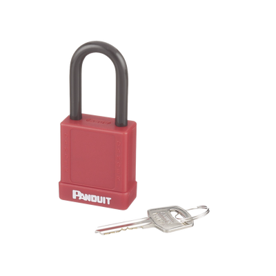 Candado de Bloqueo LOTO de Seguridad Dieléctrico, Con Llave Única, Diámetro de 6.5 mm, Color Rojo