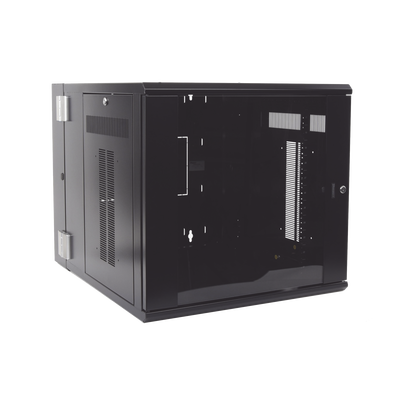 Gabinete de montaje en pared construido en acero, soporta 12 unidades de Rack para equipos de red activos o pasivos. Cuenta con paneles laterales totalmente desmontables y esta diseñado para permitir el control de clima adecuado para uso con diversos equipos de red, así como Switches de alimentación remota (PoE) y fuentes de alimentación ininterrumpida (UPS).