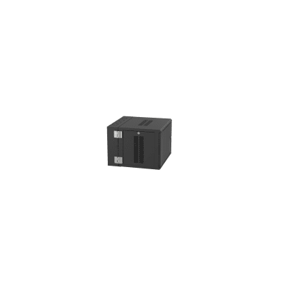 Gabinete de montaje en pared construido en acero, soporta 12 unidades de Rack para equipos de red activos o pasivos. Cuenta con paneles laterales totalmente desmontables y esta diseñado para permitir el control de clima adecuado para uso con diversos equipos de red, así como Switches de alimentación remota (PoE) y fuentes de alimentación ininterrumpida (UPS).