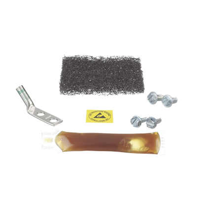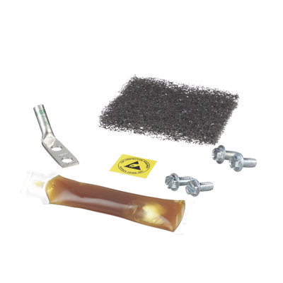 Kit ESD con terminal de 45 grados. Espacio de 5/8 para instalación versátil. Incluye pasta antioxidante para protección duradera. Tornillos especiales para ajuste seguro, 12-24 x 1/2. Previene daños por descargas electrostáticas.