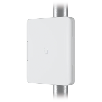 La caja de terminales para exteriores UFiber protege sus dispositivos UFiber contra daños por clima severo para que puedan permanecer operativos en todas las condiciones. Este gabinete resistente tiene un diseño de bloqueo de rosca y viene con un kit de montaje en poste para que pueda organizarlo donde necesite protección de dispositivo con clasificación IPX5 dentro de su implementación de UFiber.