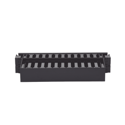 Compatible con cables coaxiales, fibra y cobre. Para racks EIA estándar de 19 pulgadas. Dedos flexibles para curvatura y manejo seguro. Acceso fácil con cubiertas de bisagra. Construcción en plástico moldeado de una pieza.