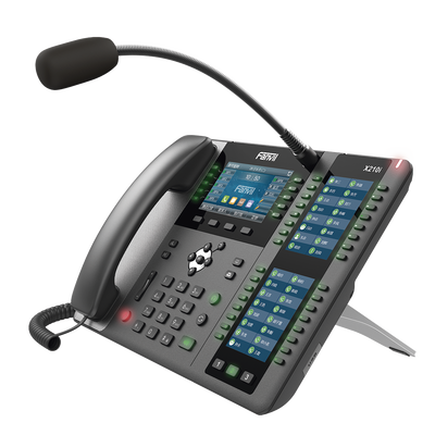 X210i es un teléfono IP empresarial de gama alta para usuarios que necesitan obtener acceso a funciones de intercomunicación y voceo, a su vez flexibles y avanzadas para manejar volúmenes de llamadas medianos a altos en su trabajo diario. El X210i tiene 10 teclas DSS en la pantalla a color principal de 4.3 ', hasta 96 teclas DSS (32 físicas) en pantallas laterales a color de 2 × 3,5', y tiene un total de hasta 106 teclas DSS para configurar para BLF, marcación rápida, función de transmisión de grupo, etc. También viene con audio de alta definición, Bluetooth incorporado, compatibilidad con EHS, Gigabit dual, PoE, cámara IP / integración de teléfono de puerta SIP, que ofrece una gran productividad con estas funciones avanzadas.